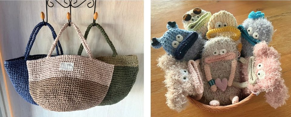 ひとつひとつ丁寧に編まれた作品が並びます。